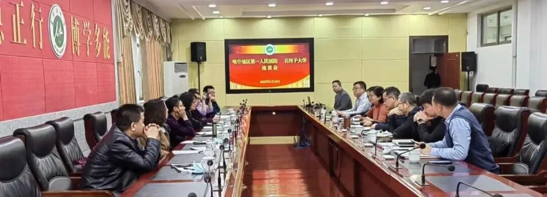为进一步推动医院教学管理工作开展,促进医院内涵建设和高质量发展,2月11日,我院党委书记、副院长邹小广,党委委员、副院长吴玉华一行8人赴新疆医科大学及新疆医科大学第一附属医院(以下简称“一附院”)推进相关工作。新疆医科大学党委副书记、校长凯赛尔·阿不都克热木,教务处处长刘涛、研究生处处长程路峰、学生处处长黎瑛,新疆医科大学党委常委,一附院党委书记、第一临床医学院党委书记王爱民,一附院党委副书记、院长陆晨,党委委员、副院长、第一临床医学院院长木胡牙提出席会议,一附院各相关科室负责人参加会议。会议由凯赛尔·阿不都克热木校长主持。