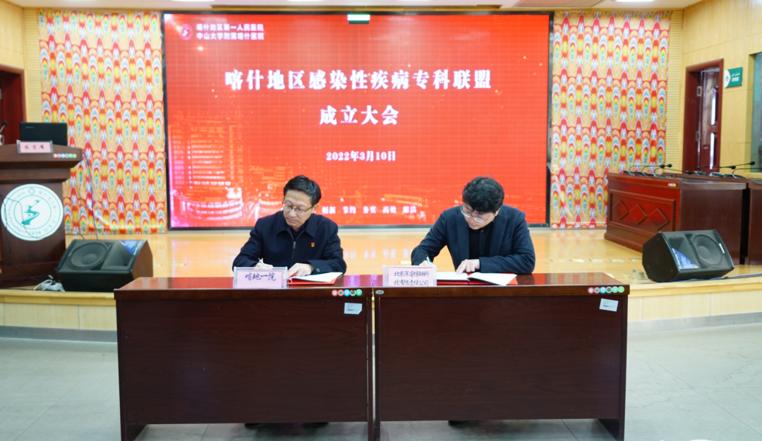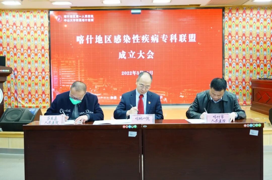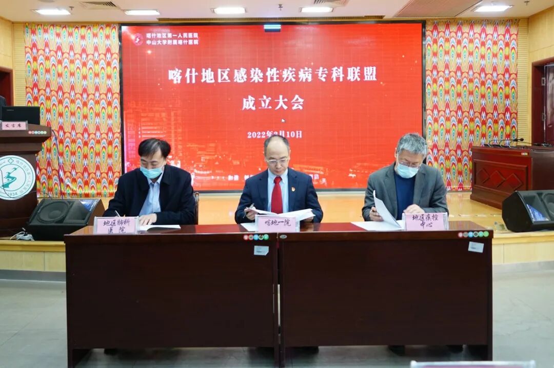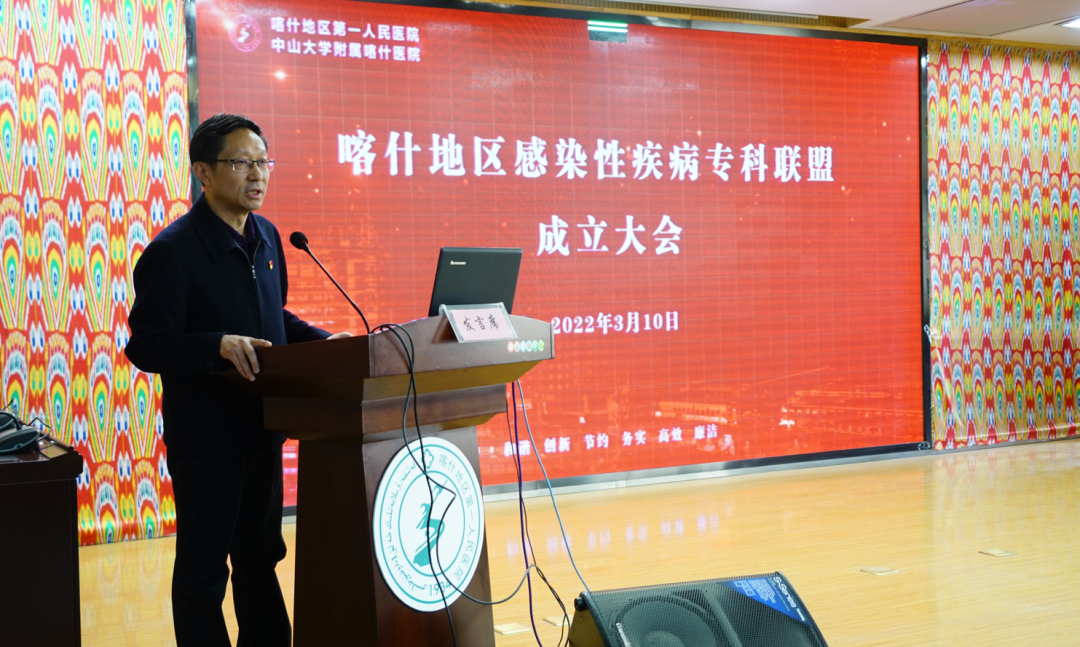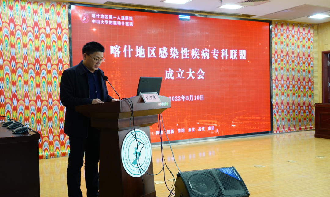 为进一步提升喀什地区感染性疾病区域协作协同能力,提高基层传染病防治水平,3月10日,喀什地区感染性疾病专科联盟成立大会暨签约授牌仪式在我院顺利举行。地区卫健委党组书记、副主任杨书伟同志,地区卫健委副书记、主任凯塞尔·阿不都吾甫尔同志,地区疾控中心副主任张振东同志,地区肺科医院院长李宾同志,北京深睿博联科技有限责任公司创始人兼公司CTO李一鸣先生、创始人助理梁绍慈先生,我院党委书记、副院长邹小广同志,院长吴小剑同志以及来自喀什地区12县市人民医院主要领导出席会议。会议由我院党委委员、副院长吴源泉主持。
