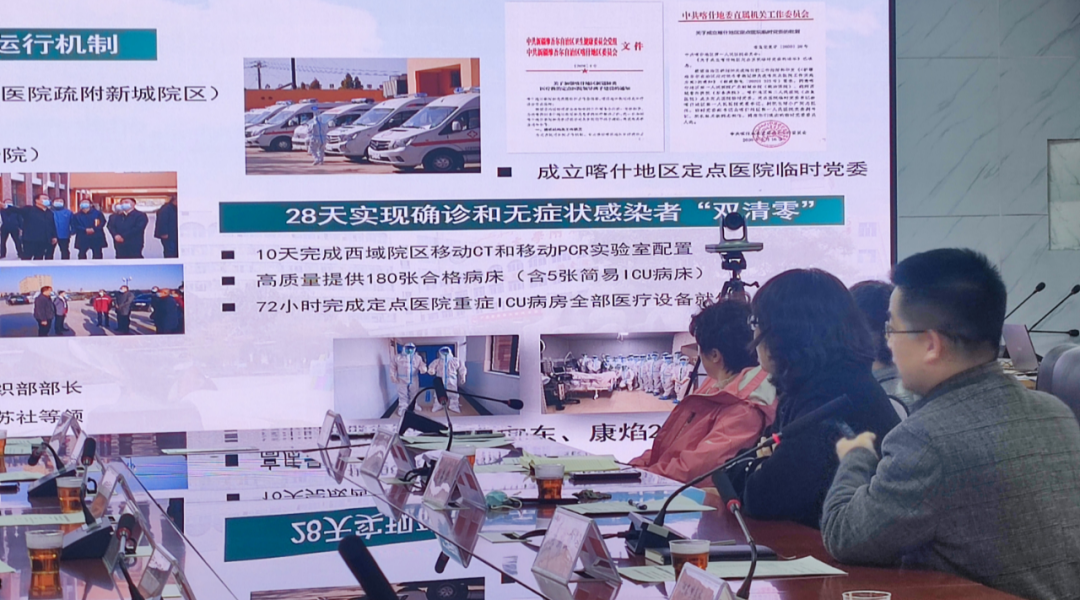▲图丨会议现场为全面了解和掌握全区疾病预防控制体系内各单位的基本能力、服务情况,3月1日,自治区卫健委黄鑫淼副处长一行5人在地区卫健委何懿副主任、地区疾控中心赵春阳主任的陪同下,来院调研疾病预防控制体系建设情况。院党委委员、副院长吴玉华,李新华教授,医务部、感染科等相关科室负责人参加会议。会议由吴玉华副院长主持。