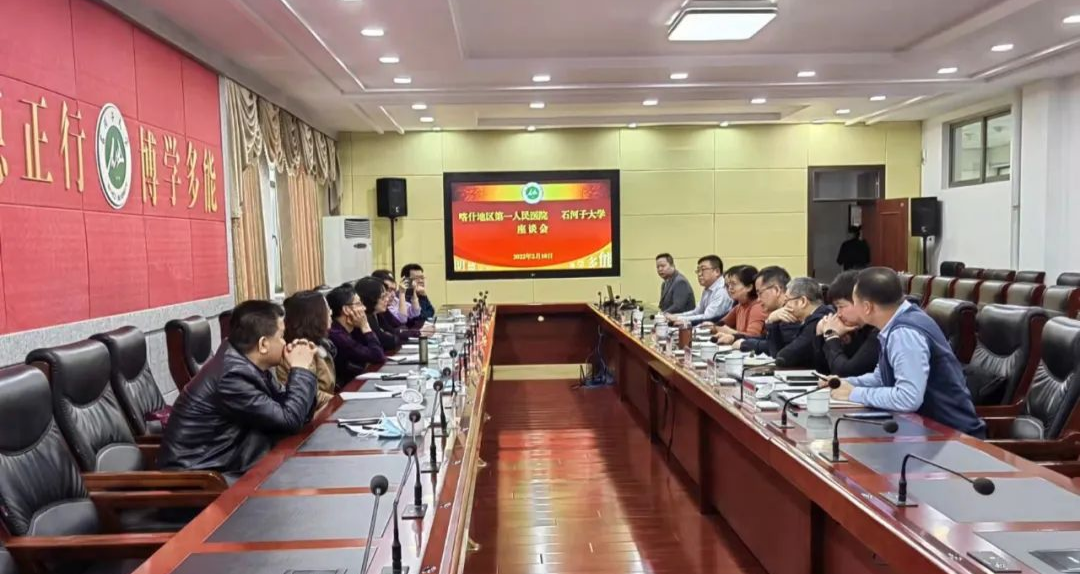 马春晖副校长代表全校师生向邹小广书记一行人的来访表示热烈欢迎,并介绍石河子大学的基本情况。他指出,喀地一院作为一所集医疗、急救、教学、科研、预防、康复、保健于一体的综合三级甲等医院,近年来已成为南疆医疗行业的排头兵。同时,喀地一院也是石河子大学最重要的医学人才培养合作基地之一,合作历史悠久。双方建立协作关系,联合推动医学人才培养,是推进兵地融合发展的重要实践,也是深化两地兵地融合发展、惠及各族干部群众的重要举措。希望通过本次交流,双方在已开展的教学合作基础上,促进协同关系进一步升华,将“医、教、研”三辆马车并驾齐驱,充分利用各自的区域特点和资源优势,加强医学教育领域的交流与合作,实现双方共赢发展。![]()
