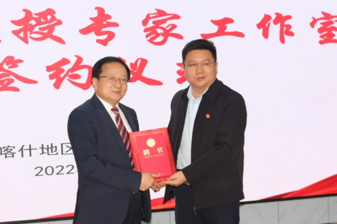 江明教授在讲话中对我院取得的成绩给予了高度的评价和认可,并对我院学科建设及学科管理等方面提出意见和建议。他表示,近年来,喀地一院发展十分迅速,医院综合实力更是稳居全疆前列,巨大的成就离不开喀地一院党委班子的坚强领导和全院职工的努力奋斗。希望借助成立专家工作室的契机,能为喀地一院开展干细胞临床研究、造血干细胞移植技术等给予更多的技术支持与指导。同时,在喀地一院现有先进血液技术设备的基础上,通过多学科交叉融合,毫无保留地将自身多年摸索的经验分享给医院,让喀地一院在血液病的临床诊治和研究中避开误区、少走弯路,踏上高速发展快车道,为推动南疆血液专业医教研全面发展添上浓墨重彩的一笔。