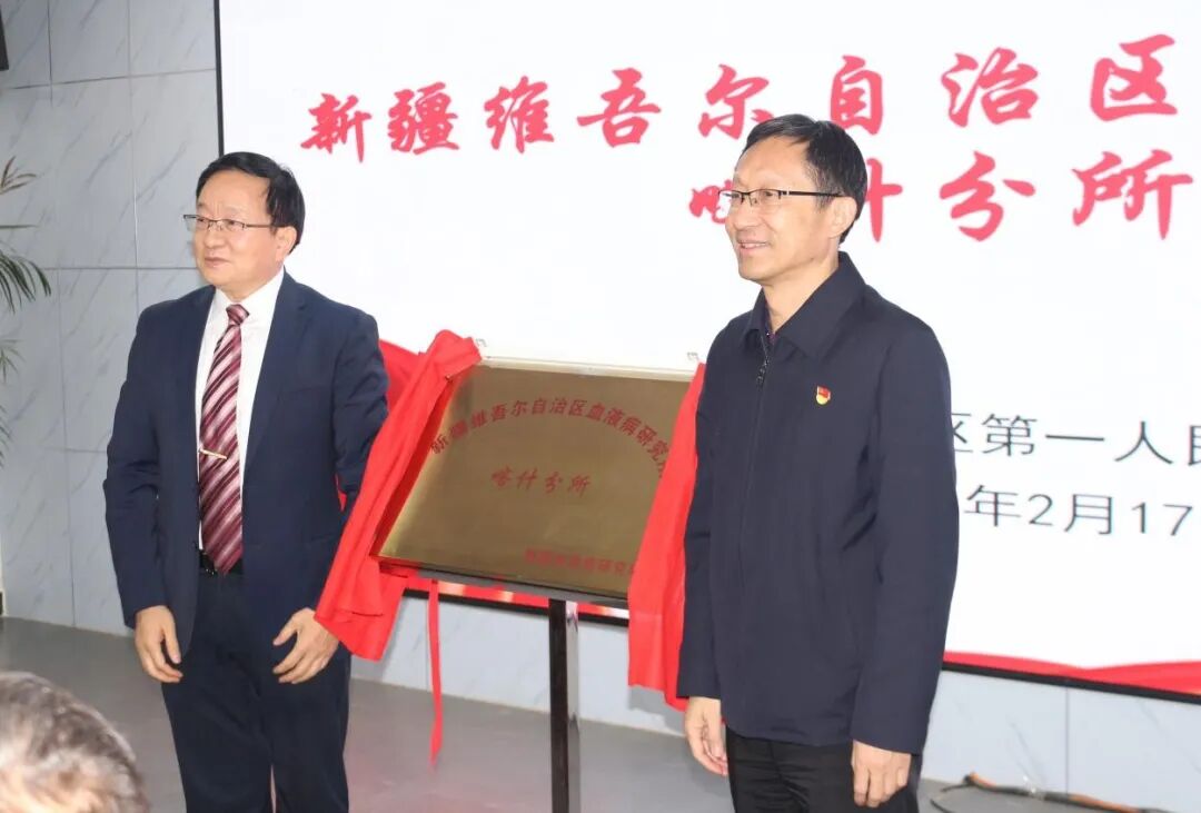 在与会人员的见证下,邹小广书记与江明教授共同为新疆维吾尔自治区血液病研究所喀什分所揭牌。