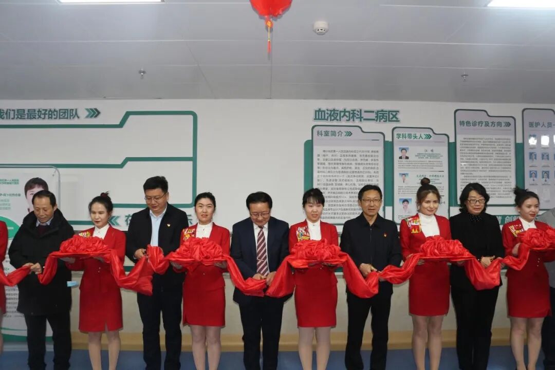 随后,与会领导一行移步血液病中心,为造血干细胞移植病房启用进行剪彩。