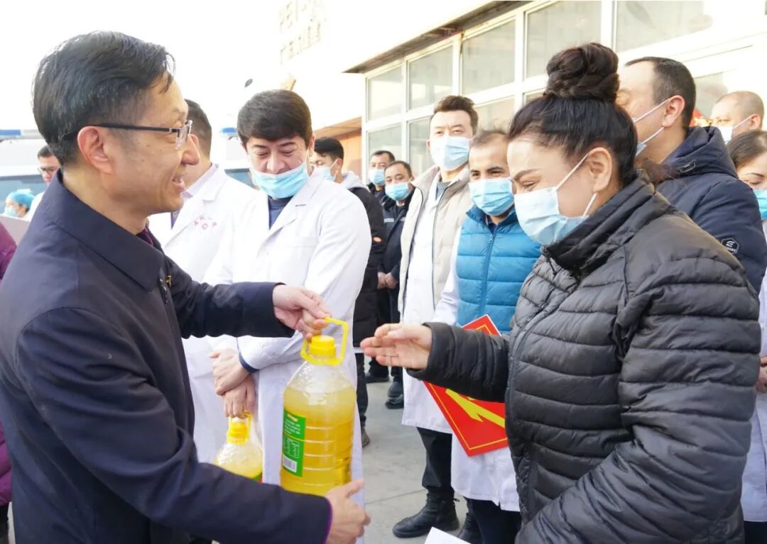 金牛辞旧岁,福虎迎新春。2月1日,正值农历大年初一,在万家团圆欢度新春的时刻,我院医务人员为“大家”舍 “小家”,依然默默坚守在临床一线工作岗位上。为让他们感受到医院这个“家”的温暖,院领导携相关职能科室对坚守临床一线医务人员进行了走访慰问,向大家致以新春的祝福和崇高的敬意,并送上慰问礼品。