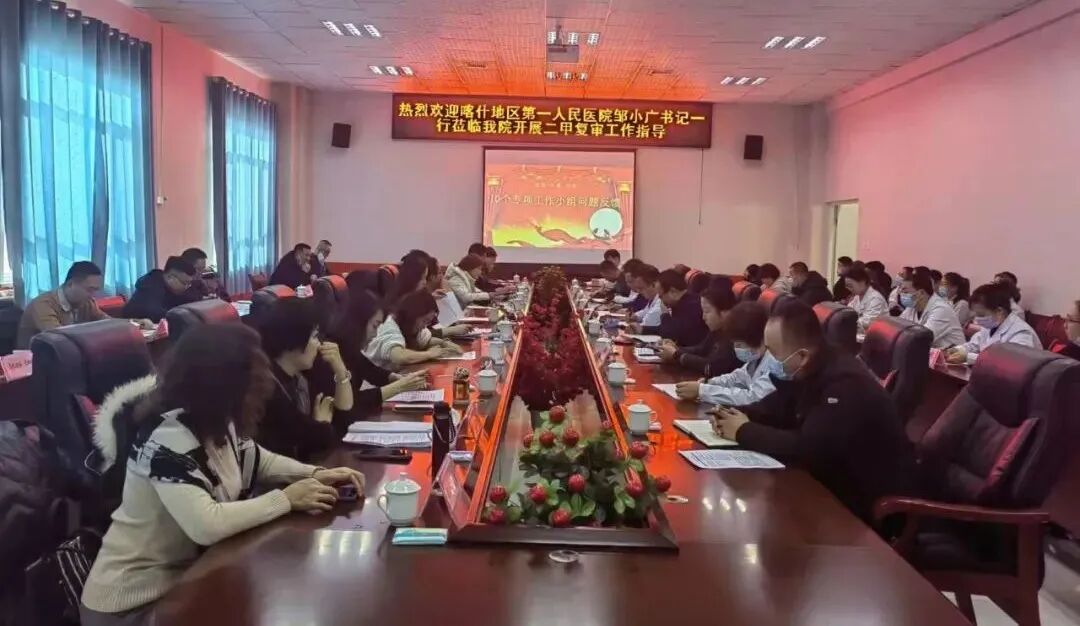 邹小广书记在总结讲话中说道,两家医院干部职工在院党委的坚强领导下,以良好的心态为等级医院复审工作奋发拼搏,有许亮点和可圈可点之处。此外,他对两家医院等级评审工作提出三点工作建议,第一要尽快明确方向,按照各自医院在喀什地区的战略地位,找准目标,精准施策,全力以赴完成等级评审工作。第二医院领导班子要按照分组逐一梳理问题,迅速整改,同时,按照自治区卫健委关于等级医院评审培训班的要求,制定整改时间表,按照步骤有计划落实整改。第三坚定信心、正视困难、凝心聚力,要充分依托援疆力量,借势发力,以优异的成绩圆满通过评审。