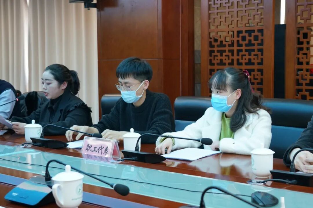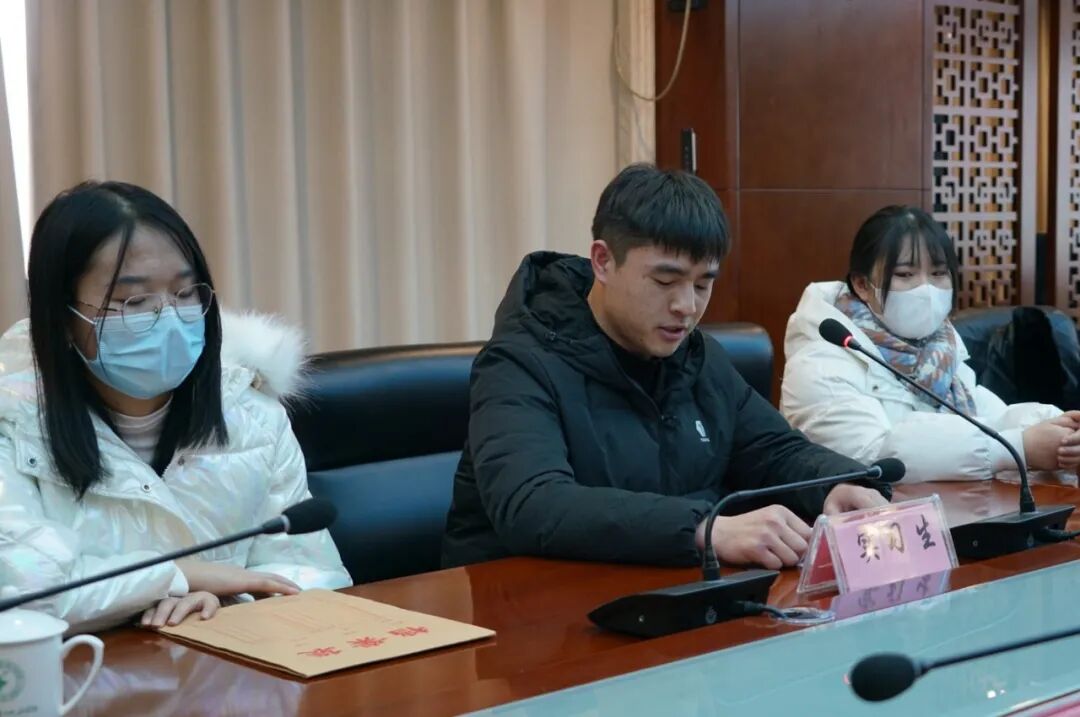 ▲图丨我院职工代表、河西学院毕业生刘倩、米积仁、魏丽红分别分享来院工作感想;河西学院实习生代表任虎虎表态发言