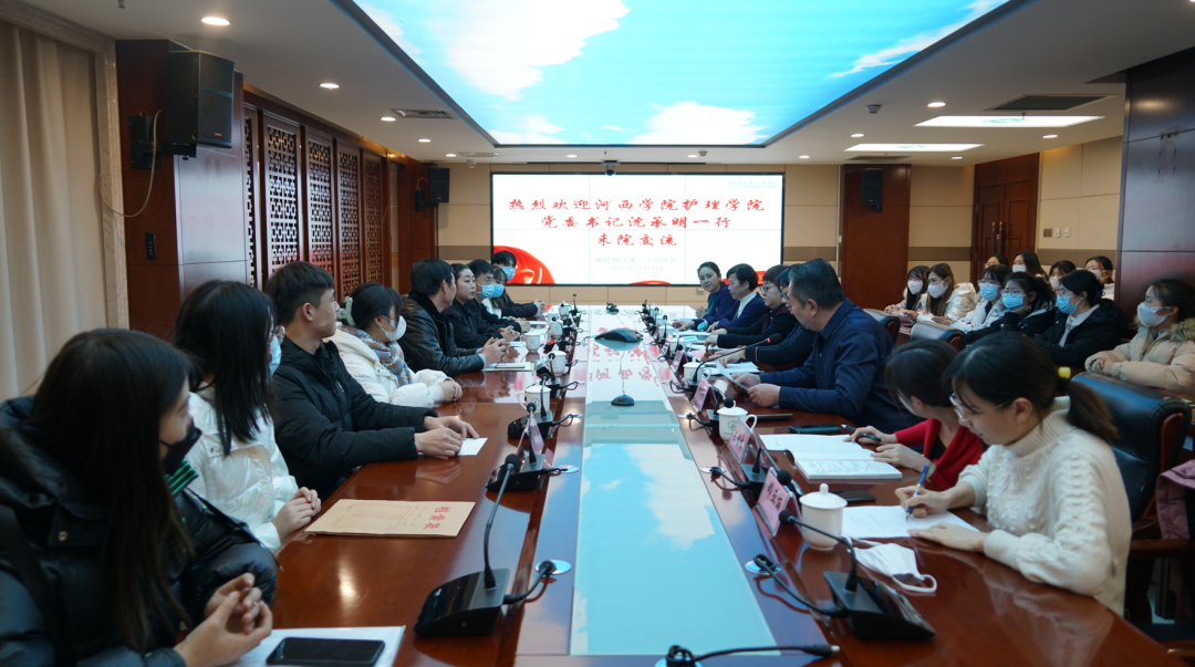 2022年1月14日,河西学院护理学院党委书记沈承明带领27名河西学院2022届护理专升本毕业生来我院实习并座谈交流。我院党委委员、副院长吴玉华出席会议,组织人事科、护理部、教学管理科等科室负责人参加会议。