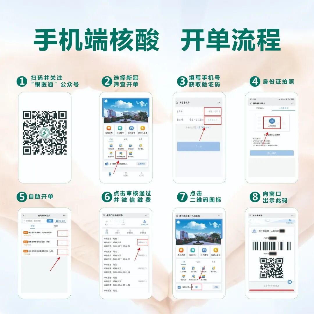 PS:对手机操作不熟练的老爷爷和老奶奶也不用着急,我院核酸采集点提供现场开单+缴费业务,带好身份证即可完成核酸采集。