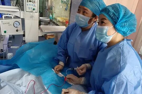 “以往我科在新生儿PICC置管过程中都采用‘盲穿’的方式,即先置管,再对新生儿宝宝做CT胸片查看是否置管成功,如果成功即可进行下一步治疗,如果不成功则需要进行重置。”新生儿科护士长范丽丽介绍道,以往的方法缺陷多,有可能对宝宝造成一定伤害,此次新开展的“心电波形引导下新生儿PICC尖端置入技术”不仅减少了CT对宝宝带来的辐射,还提高了置管成功率,可谓是一举多得。