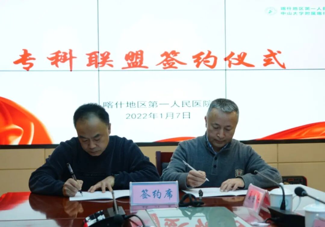 ▲图丨双方签订血管外科专科联盟、心血管内科专科联盟、肿瘤微创介入科专科联盟座谈结束后,邹辉副院长一行还先后参观调研了我院喀什·广东科技创新信息中心、国家级住院医师规范化培训基地、肿瘤微创介入科、经管办、医保办及网络信息中心等地。
