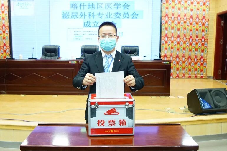 成立大会后,在与会人员的见证下,喀什地区医学会泌尿外科专业委员会第一届委员会选举诞生。选举由刘瑛主任主持,学会办阿木提·吾斯曼监督、计票,全程公平公正,采取无记名投票方式。
