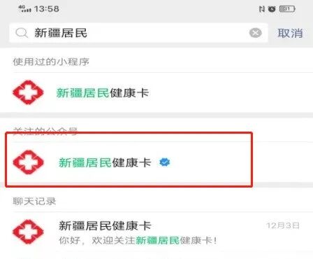 方式一:(一)手机关注“新疆居民健康卡”公众号。![]()