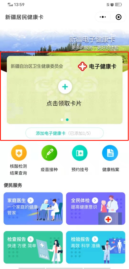 (三)进入后点击领取卡片,完成注册,即申领成功。