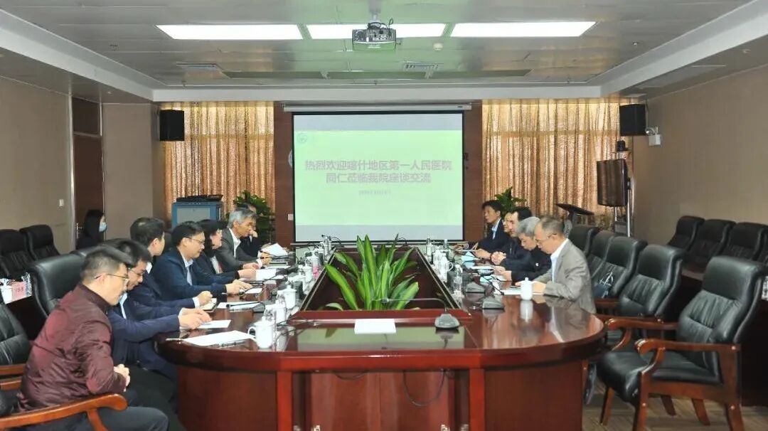 近日,在喀什地区卫生健康委员会党组副书记、主任凯塞尔·阿不都吾甫尔带领下,喀什地区卫生健康委员会党组成员、副主任,广东省卫生健康委二级调研员张史彬,我院党委书记、副院长邹小广,院长吴小剑、副院长彭亮等一行六人前往中山大学附属第三医院(下称“中山三院”)推进医疗人才“组团式”援疆工作。中山三院党委书记吴京洪、院长戎利民、副院长杨钦泰出席座谈会。会议由吴京洪书记主持。