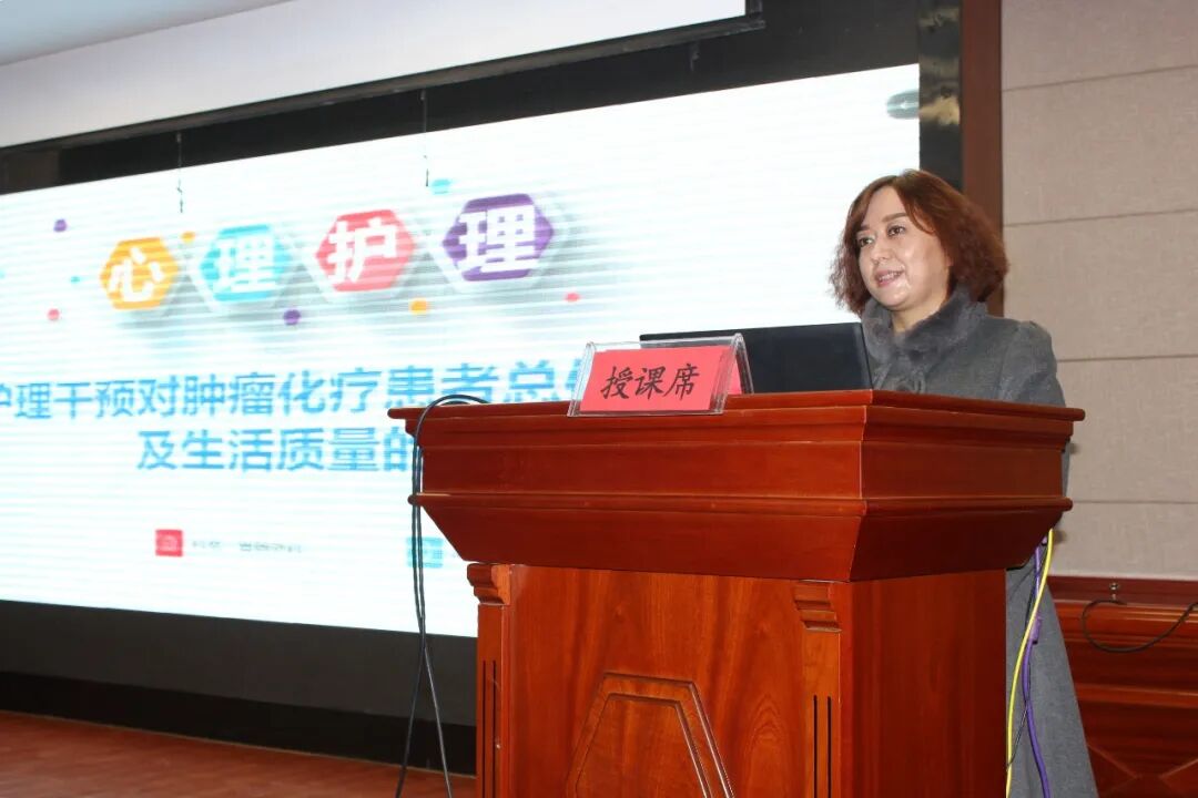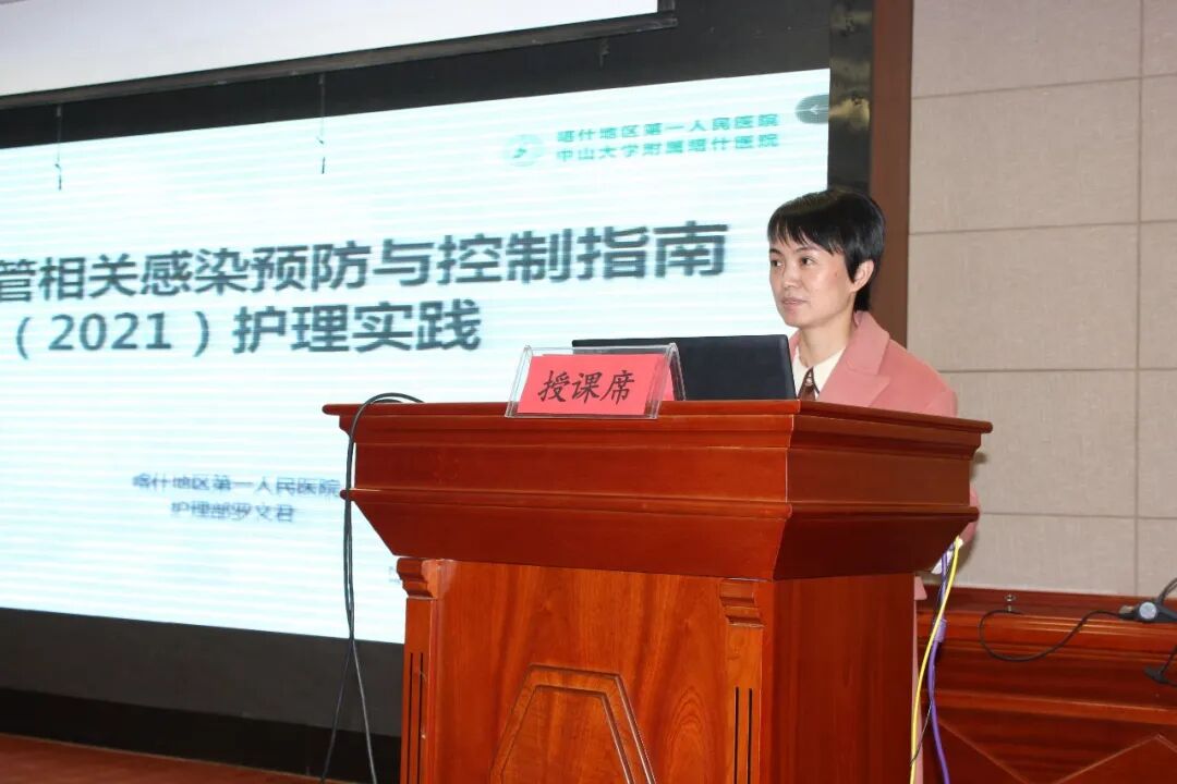 为推动肿瘤精准护理发展,提高肿瘤专科护理水平,规范肿瘤患者静脉治疗流程,近日,由我院主办的自治区级护理继续教育项目《新形势下静脉治疗和肿瘤精准护理新进展研讨班》在我院中五楼学术厅顺利举行。活动特邀山东大学护理学院副教授、山东大学齐鲁医院副主任护师、山东省老年医学学会静疗专委会主任委员、喀什地区结核病防治所暨肺科医院护理部主任高伟及我院静疗专科相关护士长进行授课,我院护理部及喀什地区十二县市医疗机构护理骨干与相关护理人员参加此次培训。