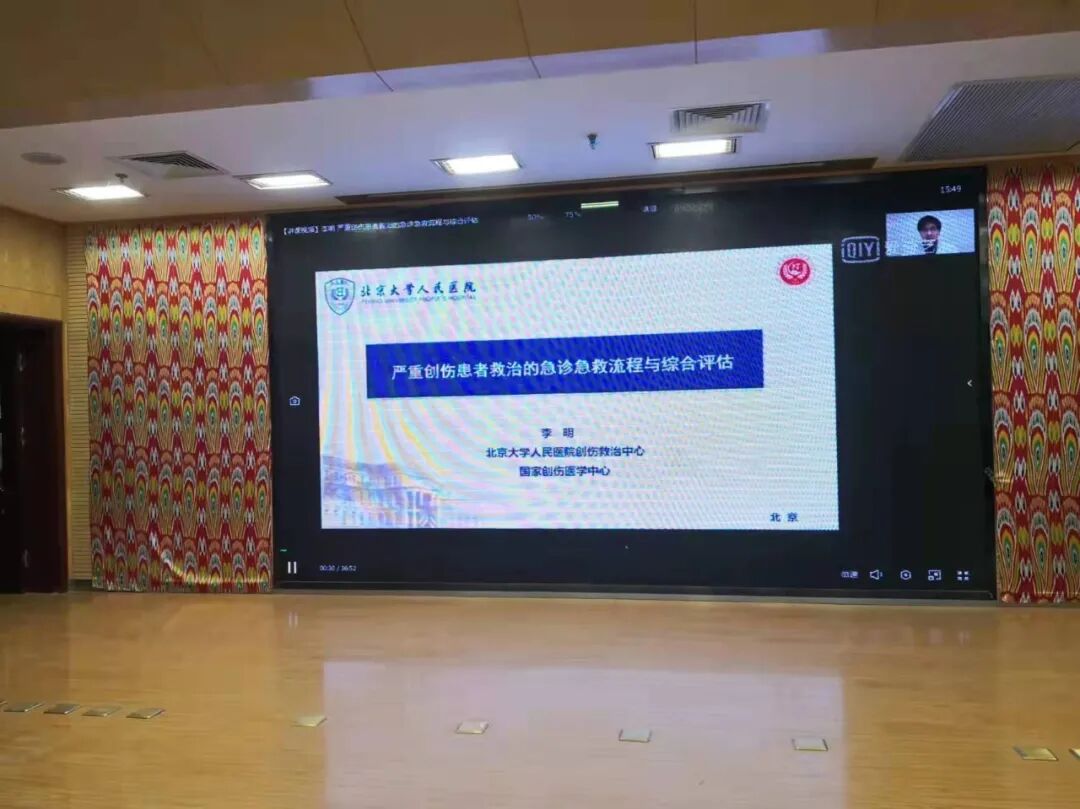 大会结束后,我院还在门诊17楼以线上线下相结合的方式组织开展了第一届南疆区域创伤救治专业技术讲座。来自北京大学人民医院、南方医科大学南方医院、华中科技大学同济医院、陆军军医大学大坪医院及我院的十一位专家学者,分别就创伤体系建设、创伤能力提升以及创伤救治相关的前沿知识进行讲解与病例分享,为与会人员带来了一场精彩的学术盛宴。