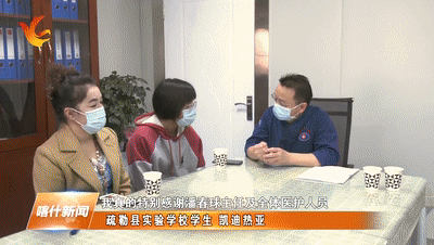 疏勒县实验学校学生凯迪热亚 :把我从死亡线上拉了回来,我真的特别感谢潘春球主任及全体医护人员,我现在都已经出院了,身体都已经特别好了。