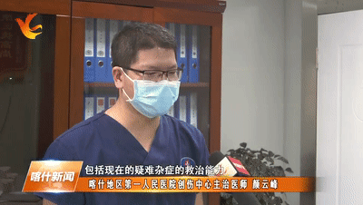 广东援疆干部、williamhill威廉希尔官网院长助理、医务部主任、创伤中心主任潘春球:学生不小心从17楼掉下去,当时他们做了一个CT检查以后,胸骨骨折,鼻骨骨折,然后腹腔里面有积血、肝、脾、胰腺裂伤,给我们带来了很大的挑战,但是我们医生职责就是要怎么样想办法,把这种危重的病人把她救回来,这就是我们职责所在,也是创造了严重创伤救治的一个奇迹。
