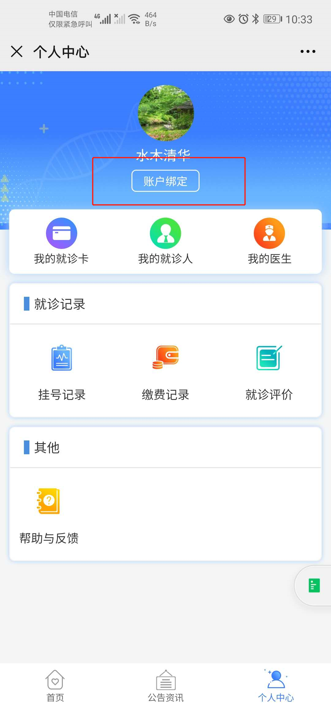 扫码进入点击右下方 “个人中心”点击【账户绑定】进行绑定个人信息。