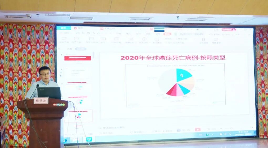 杨振业教授以《癌症研究的历史和现状》为题,从肿瘤的流行病调查和我国的形式、古代对肿瘤的认识、近代的肿瘤研究及其团队的思考四个方面进行了阐述。