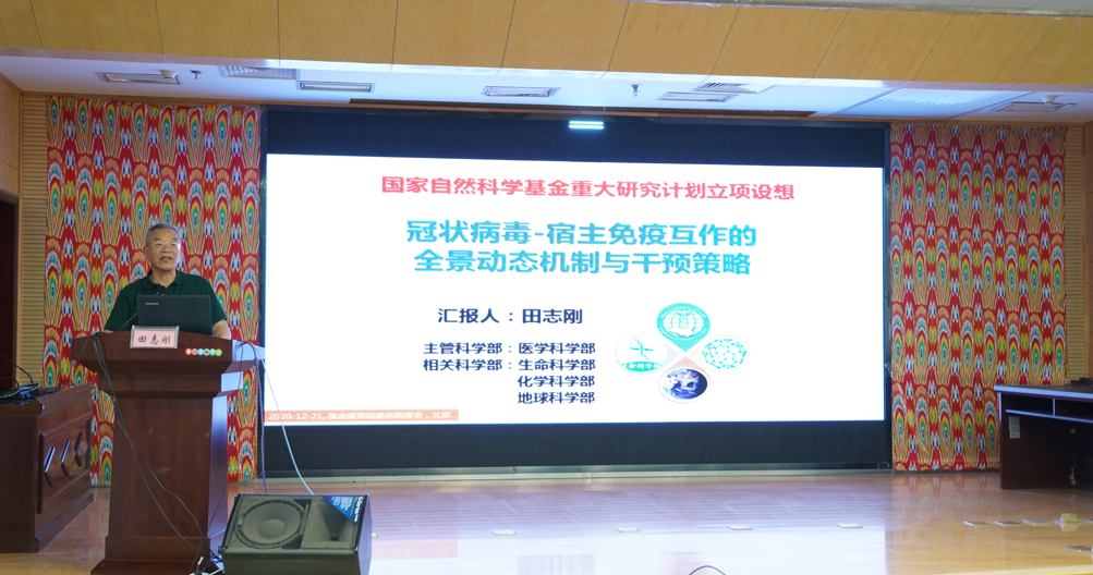 田志刚院士以《冠状病毒-宿主免疫互作的全景动态机制与干预策略》为题进行授课,分别从新冠肺炎与全景免疫研究背景、核心科学问题、主要研究内容与实施方案三个方面进行讲述。