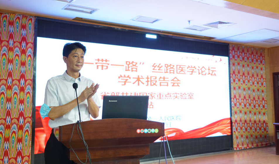 9月7日,“一带一路”丝路医学论坛学术报告会(省部共建中亚高发病成因与防治国家重点实验室-喀什站)在我院门诊17楼会议室召开,省部共建中亚高发病成因与防治国家重点实验室(以下简称“省部共建国家重点实验室”)温浩教授一行莅临医院开展指导工作和学术交流,我院党委书记、副院长邹小广,党委委员、副院长彭亮,天山英才创新团队成员、省部共建国家重点实验室-喀什站六大专业人员、科研导师制培训班学员及科研管理科工作人员参加会议。会议由彭亮副院长主持。